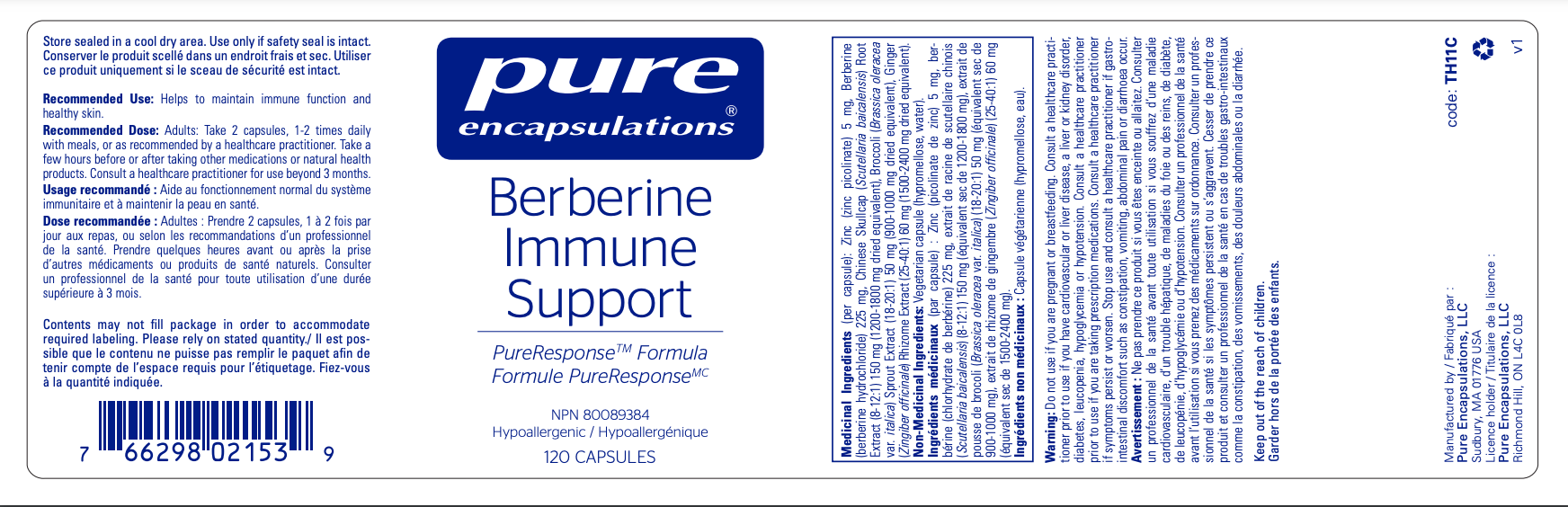 Berberine Immune Support is designed to maintain immune health by supporting healthy activation of Th1 cells, thereby promoting innate immunity and cell-mediated immune defences. Th1 responses are affected by stress, aging and cytokine changes resulting from metabolic, hormonal, physiological, and environmental factors. This product helps balance cytokine production in order to promote Th1 differentiation. Support for Th1 may be indicated for enhancement of natural defences. Berberine is a natural plant alkaloid that has been researched in clinical and preclinical studies, while ginger is a traditionally used and clinically studied herb. Zinc plays an important role in supporting the body’s defence system, promoting healthy neutrophil, natural killer cell, and T-lymphocyte function. This formula also offers skullcap and broccoli, which are primarily recognized for their bioactive constituents baicalin and sulforaphane, respectively.