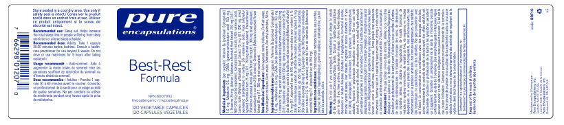 Best-Rest Formula supports sleep quality and a healthy sleep cycle by encouraging an easy transition to sleep and a restful night’s sleep. This unique blend contains valerian, passion flower, chamomile, lemon balm and hops, which are traditionally used in Herbal Medicine. Double-blind trials involving valerian alone and in combination with other herbs have indicated its potential to support both sleep onset and quality. Best-Rest Formula also includes melatonin and GABA. Melatonin is a hormone produced by the pineal gland. It is synthesized in the circadian rhythm by enzymes, which are activated by darkness and depressed by light. GABA is the primary inhibitory neurotransmitter in the brain, and l-Theanine is a bioactive compound in green tea.