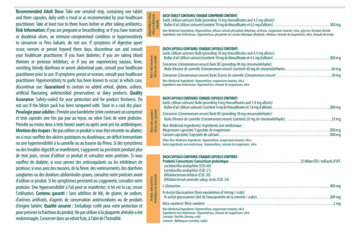 Recommended Adult Dose: Take one serrated strip, containing one tablet and three capsules, daily with a meal or as recommended by your healthcare practitioner. Take at least two to three hours before or after taking antibiotics